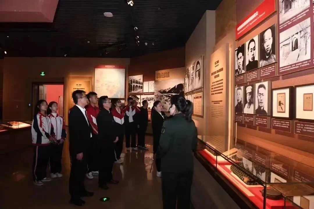 29日上午10点,师生到达延安市革命纪念馆,怀着崇敬的心情,认真聆听党史讲解。随着讲解员深情的讲述,师生被两件珍贵的文物深深吸引、久久驻足——这是陕北共产党的奠基者李子洲先烈生前使用过的皮箱与礼帽。1923年,李子洲经李大钊介绍加入中国共产党。1924年秋,李子洲返回榆林任绥德陕西省立第四师范公司董事长。上任后,李子洲要求员工们:“求学勿忘革命,革命勿忘求学。如求学而忘革命非真求学,革命而忘求学非真革命”。随着马克思主义在“四师”的广泛传播及党组织的建立和发展,这里点燃了陕北革命的星星之火,成了陕北有志青年最向往的地方。