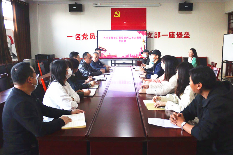2022年10月21日下午4点,k1体育教工党员在艺术楼302会议室集体学习党的二十大报告。