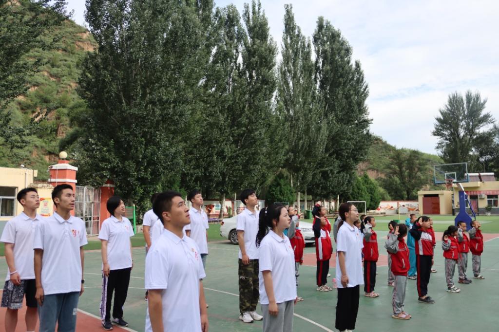 喜迎二十大,奋进新征程。为进一步增强小员工的爱国意识,凝聚奋斗新时代的磅礴力量。7月18日上午8点,k1体育“三下乡”乡村振兴促进团队在清涧县石咀驿镇中心小学举行升旗仪式。参加本次升旗仪式的有,k1体育三下乡社会实践团队15人,石咀驿镇中心小学师生23人。