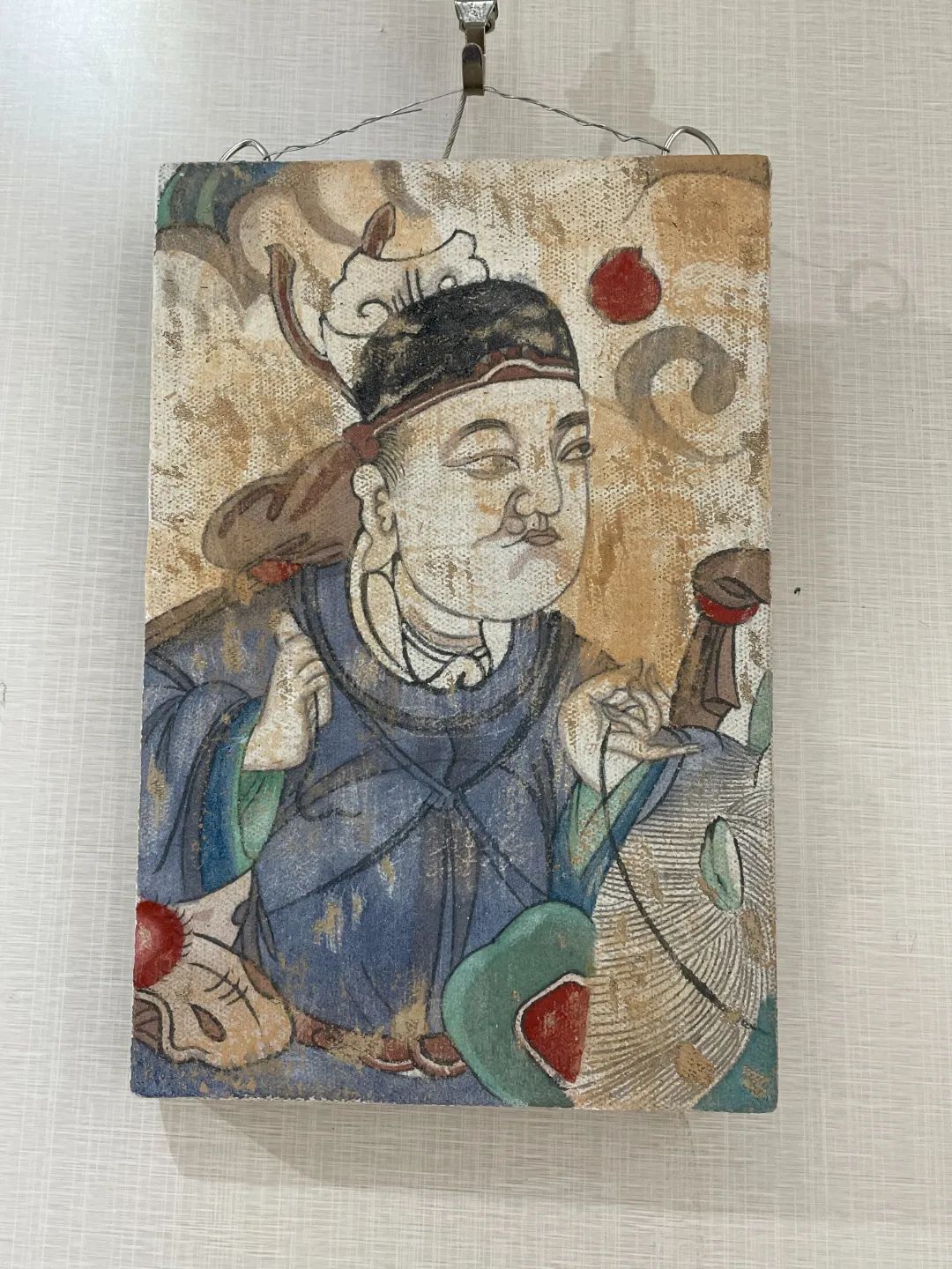 这次我们临摹壁画不是单纯在纸上用线条、色彩绘制,而是增加了泥皮底板制作,极大程度的增加了壁画临摹的难度。与纸上绘画不同的是我们需要先制作出粗糙的墙体绘画面。第一步便是模拟墙壁的泥皮,用粗草泥层(粉质沙土掺加麦秸草和泥土)抹在实木板上,等晾干后在粗草泥层之上涂抹细泥层,再次晾干之后,在细泥层上涂刷一层非常薄的高岭土、石灰或石膏之类的粉层,等全部干燥后即可绘制壁画。我们利用课余时间一遍一遍完成程序,光是基底制作就进行了近一个月的时间。