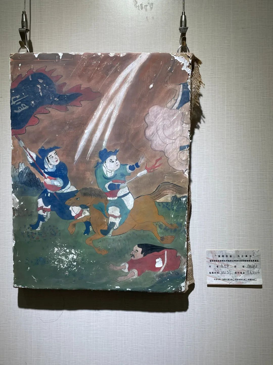 壁画大赛从3月份发出征集令到6月份展出共历时3个月。3个月中进行了三次集中的理论讲座学习,专题为分别为:《中国传统画解读》主讲人:王小维博士、《陕北古寺庙壁画解读》主讲人:马丽教授、《传统壁临摹实践》主讲人:裴家月老师。理论集中讲授结合实践操作学习,在结合理论实践操作中学习了传统壁画泥板基底制作、传统壁画绘制技术、传统壁画做旧技术等。