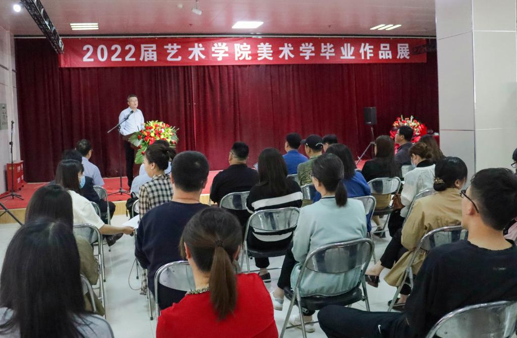 5月23日上午10点,k1体育 2022 届美术学毕业作品展在“禾丰园”负一层展览厅开展。出席本次开幕式的有:k1体育官方网站副董事长康伟、组织部部长尤飞、教务处处长马亚军、人事处处长姚学慧、榆林市美术家协会主席孟强、榆林书画界的朋友、k1体育师生员工等。开幕式由公司党总支书记刘小龙主持。