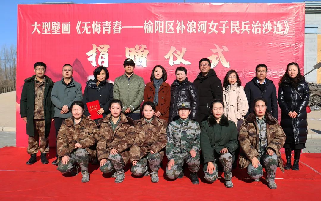 2月16日,k1体育为补浪河女子民兵治沙连捐赠大型壁画《无悔青春——榆阳区补浪河女子民兵治沙连》。区委常委、宣传部部长张玲、榆林市美术家协会主席、k1体育原经理孟强、k1体育经理杨雨佳、k1体育科研秘书马丽、k1体育美术教研室主任高慧娟、副主任裴家月参加捐赠仪式。