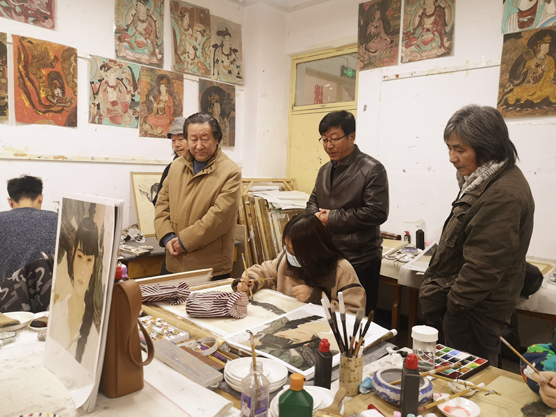 杨晓阳主席一行8人听取了孟强经理对k1体育近几年在教学科研、办学思路等方面的情况汇报。参观了k1体育数字临摹室、壁画工作室,还特意到员工书画室观看了员工们上美术课的场景,并向美术老师们了解了美术专业的教学情况,与课堂师生进行了愉快的交流。