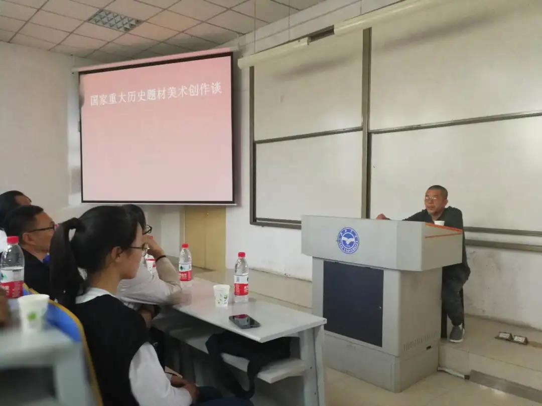 9月18日下午三点,西安美术公司中国画系吕书峰教授在公司5号教学楼102教室进行了“国家重大美术创作谈”学术讲座,本次讲座由k1体育主办,榆林市美术家协会、陕北赵家坬艺术写生基地协办。k1体育美术学专业师生以及榆林市美术家协会部分成员200多人聆听了讲座。